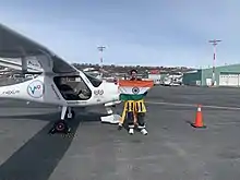 She embarked on the journey along with her co-pilot on July 30, 2018, taking off from Patiala, India and flying to 27 stops at Pakistan, Iran, Turkey, Serbia, Slovenia, Germany, France, UK, and Iceland. On September 6, 2018, she began the solo phase of the WE! The expedition, in which she set four world records. She became the first woman in the world to fly across the Atlantic Ocean from Scotland to Canada with stops at Hofn and Reykjavik in Iceland, and Kulusuk and Nuuk in Greenland, landing at Iqaluit, Canada on May 13, 2019. Along the way, she also became the first woman in the world to fly over the treacherous Greenland icecap in a light-sport aircraft, on May 4, 2019, one of the most memorable and courageous flights of the expedition. Thereafter her journey across Canada, all the way from Iqaluit in the North East to the South, and the West and North along the Rockies into Alaska, negotiating with strong winds and forest fires in 22 flights over 9 Canadian provinces, made for another world first. On August 21, 2019, she achieved a cherished dream for herself and all at the Foundation, when she flew the Pipistrel Sinus 912 over the mighty Pacific Ocean nonstop from Nome, Alaska to Anadyr in Far East Russia, setting a world record.[1][2][4][3]