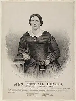 Abigail Becker (1830–1905), known as the Angel of Long Point, was a Canadian woman credited with saving the lives of numerous sailors caught in storms along the shores of Long Point. When the storms had passed, she would wade in the water as far as she could to rescue trapped seamen from their doomed ships.