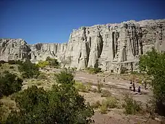 Georgia O'Keeffe painted her landscape "From the White Place" in 1940 based on her study of the Abiquiu Formation at Plaza Blanca, and her studio at Abiquiu commanded a view of the Plaza Blanca outcrops to the north.[4]
