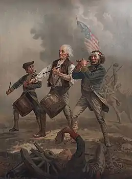 Organized anti-monarchism in what is now the United States developed out of a gradual revolution that began in 1765, as colonists resisted a stamp tax through boycott and condemnation of tax officials.[9] While they were subject to the authority of the Parliament of Great Britain (as the monarchy was a limited monarchy since 1660), the North American citizens increasingly clashed with the Parliament that did not provide seats for parliamentary representatives from North America. With the Declaration of Independence in 1776, anti-monarchical propaganda resulted in violent protests that systematically removed symbols of monarchy. For instance, an equestrian statue of George III in New York City was toppled. Parliamentary loyalists were particularly affected by partisan attacks, with tens of thousands leaving for British Canada.[10] Property that remained was confiscated by each of thirteen newly created States through newly passed laws.[11] Artifacts from the colonial period depicting the British monarchy are seldom found in the United States. However, not all sentiment equated to anti-monarchism. A normality of a monarchy at the head of a polity remained, that some Americans saw a presidency in monarchical terms, a Caesar of the republic, was an early debate in the new republic.[12]