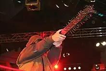 Mesias then suffered an injury outside TNA, leaving Mitchell to enlist the aid of Raven and Black Reign to feud with Abyss and Rhino. The four battled at Bound for Glory in a Monster's Ball match, with Abyss picking up the victory with a pinfall over Raven.[19] Following the event, Abyss battled against Mitchell and Black Reign, with Black Reign and Abyss attacking each other on several occasions.[2] Black Reign, after an attack by Abyss, challenged Abyss to a Shop of Horrors match at Genesis, which Abyss accepted and won.[2] After the match, Abyss was attacked and thrown off the stage by Black Reign and a mysterious wrestler, later identified as Rellik.[2] Following the event, Abyss continued to feud with Black Reign and Rellik and brought in Rhino to help him even. This rivalry led to a Match of 10,000 Tacks with Abyss and Rhino teaming up to take on Black Reign and Rellik booked for Turning Point. Rhino could not make the event due to a legitimate neck injury caused by Rellik during a match on Impact, so Abyss chose Raven as his new partner.[2] Abyss and Raven won the match after Abyss performed the Black Hole Slam on Rellik on the thumbtacks.[2]