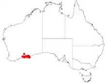 It is native to an area in the Goldfields-Esperance region of Western Australia where it is found east of Esperance growing in granitic sandy soils.[1] The shrub occurs from around Grass Patch in the north to Cape Arid National Park in the south and are often part of shrubland or low mallee communities.[2]