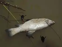 By November 2015, an environmental disaster occurred when one of the feeder streams to the floodplain was contaminated carrying red-colored foamed water. It was reported that fish died and the crop planted by villagers got poisoned.[1]