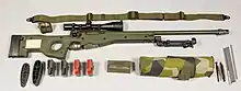 The Accuracy International AX long range sniper rifle series was designed for long, high-powered super magnum cartridges and was unveiled in January 2010 at the SHOT Show trade show. It is a major design evolution based on the AWM variant of the AW series and its development was according to Accuracy International partly driven by a Precision Sniper Rifle (PSR) U.S. Special Operations Command solicitation.[24] The PSR contract was awarded in 2013 to Remington Arms for their Modular Sniper Rifle.[25]