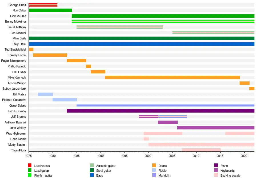 - George Strait – lead vocals, acoustic guitar (1975–1980)