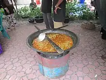 Acehnese cuisine is known for its combination of spices just as are commonly found in Indian and Arabic cuisine, such as ginger, pepper, coriander, cumin, cloves, cinnamon, cardamom and fennel.[45] A variety of Acehnese food is cooked with curry or curry and coconut milk, which is generally combined with meat such as buffalo, beef, mutton, fish, or chicken.[46] Several types of traditional recipe use a blend of cannabis as a flavoring spice; such cases are also found in the cuisine of some other Southeast Asian countries, such as Laos.[47] However today, those substances are no longer used.[48]