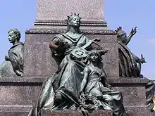 Even though the first prize was awarded to famed Cyprian Godebski, professor at the Imperial Academy of Arts in St. Petersburg from Paris, with Rygier at a close second, for the final execution a more popular design by Rygier was accepted with a contract signed in November 1889. At the poet's feet are four allegoric groups symbolising the Motherland (from the face of the monument along Sienna Street), Science (facing north), Courage (facing Sukiennice Hall) and Poetry (facing Church of St. Wojciech, south). The inscription on the pedestal reads: "To Adam Mickiewicz, the Nation".[1]