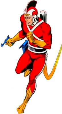 Adam Strange lacks any real superhuman attributes, choosing to rely more on quick thinking and ingenuity. Before coming to Rann, Strange was an accomplished explorer and archaeologist who specialized in gathering and studying lost artifacts found in the remains of ancient civilizations. Applying these qualities to his new life on Rann, he would venture out with his new family into the wilds of their homeworld to study and rediscover its ancient history.[29] Eventually his experiences accumulated on his adventures through the study and understanding of both Rannian culture and its vast technologies as well as its vested history, enabled Adam to pick up a host of vaunted combat techniques and scientific knowledge, giving him the edge needed to physically match and defeat immeasurably more imposing opponents over the many years. He has battled and bested adversaries both native and extraterrestrial in nature, such as Thanagarians, Durlans, Qwardians, En'Tarans, and Meta-Humans.[30][31][32][33] This along with his many decades of thriving in the harsh environments of Rann, Earth and other galactic territories has made Adam an accomplished survivalist,[34] having spent just as long traversing the rural areas as treacherous as the Amazon rainforest back on Earth.