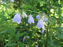 Adenophora divaricata has blue or light purple bell-shaped flowers. It grows in forests, shrublands, and on grassy slopes.[3]