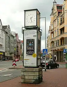 In 1926, Falke won the competition for a so-called "standard clock": according to his futurism type design, the city of Hanover placed around 20 "Falke-Uhr" in the city.[2] Even today, of the listed buildings[6] "Reklameuhren", ten copies are exposed in various locations in Hanover.[7]