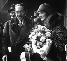 After returning from the war, Menjou gradually rose through the ranks with small but fruitful roles in films such as The Faith Healer (1921) alongside supporting roles in prominent films such as The Sheik (1921) and The Three Musketeers (1921). By 1922, he was receiving top or near-top billing, with a selection of those films being with Famous Players–Lasky and Paramount Pictures, starting with Pink Gods (1922), although he did films for various studios and directors. His supporting role in 1923's A Woman of Paris solidified the image of a well-dressed man-about-town, and he was voted Best Dressed Man in America nine times.[4] He was noted as an example of a suave type of actor, one who could play lover or villain.[5] In 1929, he attended the preview of Maurice Chevalier's first Hollywood film Innocents of Paris, and personally reassured Chevalier that he would enjoy a great future, despite the mediocre screenplay.[6] He closed the end of the 1920s with star roles such as His Private Life (1928) and Fashions in Love (1929).
