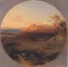 Aegina, according to Herodotus,[7] was a colony of Epidaurus, to which state it was originally subject. Its placement between Attica and the Peloponnesus made it a site of trade even earlier, and its earliest inhabitants allegedly came from Asia Minor.[8] The most important Early Bronze Age settlement was Kolonna, stone-built fortified site.[9] The main connections were with the Greek mainland, but there were found also influences from Cyclades and Crete.[10] Minoan ceramics have been found in contexts of c. 2000 BC. The famous Aegina Treasure, now in the British Museum is estimated to date between 1700 and 1500 BC.[11] The discovery on the island of a number of gold ornaments belonging to the last period of Mycenaean art suggests that Mycenaean culture existed in Aegina for some generations after the Dorian conquest of Argos and Lacedaemon.[12] Another important deposit of Early Bronze Age golden and silver jewellery was discovered by Austrian archaeologists.[13] The excavations on the site, done by the Paris Lodron Universität Salzburg are still ongoing.[14] It is probable that the island was not Doricised before the 9th century BC.