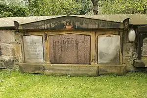 He died on 31 August 1857 and was buried on 4 September 1857.[9] His grave lies on the upper terrace of St John's Episcopal Church, Edinburgh on Princes Street, only 100m from his home on Charlotte Square.