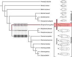In 2020, Aenigmachanna was placed in its own monotypic family, the Aenigmachannidae, or the dragon snakeheads.[3][7]