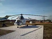 This Mil Mi-2 helicopter was used by the Hungarian Air Ambulance from January 1980. Until 1994 it was stationed in Székesfehérvár; in August 1994 it was flown to Ferihegy for repairs, but due to a lack of funds it was withdrawn from service. Its total flight time is 2841. It was towed to the aviation museum in 1999.[16] The helicopter can only be viewed from outside.