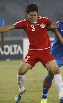 They also participated in the first edition of the AFC Challenge Cup in 2006, for which they drew both matches with Chinese Taipei and the Philippines with Afghan footballers Hafizullah Qadami and Sayed Maqsood Hashemi both scoring to produce a drawn result, and on their second world cup campaign in 2010 FIFA World Cup qualification were eliminated by Syria. In the SAFF Championship 2008 Afghanistan lost to Bhutan but drew with Sri Lanka and Bangladesh. Afghanistan entered the second round of the AFC Challenge Cup in 2008,[8] by winning in group D of the AFC Challenge Cup Qualification, drawing with Bangladesh and winning against Kyrgyzstan. In the 2008 AFC Challenge Cup, Afghanistan lost all group matches to India, Tajikistan and Turkmenistan. In 2009 SAFF Championship Afghanistan lost all its matches to Maldives, India and Nepal. Hashmatullah Barakzai scored Afghanistan's only goal against Maldives in that loss.[9]