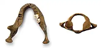 Afontova Gora is a complex, consisting of multiple stratigraphic layers, of five or more campsites.[2] The campsites shows evidence of mammoth hunting and were likely the result of an eastward expansion of mammoth hunters.[3] The human fossils discovered at Afontova Gora, a male and a girl dated to 17,000~15,000 years BP, were stored in the Hermitage Museum.[2]