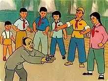 The film was produced and released under the term of chairman Mao Zedong when the cultural revolution was still ongoing. As with other animated films of the era, it had a class struggle theme.[2] The plot backdrop is an elementary school. A story book was also released as a companion to the film.