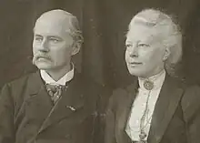 Their marriage was registered in the Delft population register on 10 November 1869. Their first home was a modest apartment on a canal, but they moved frequently after that. As of 2012, all of their homes are still standing and all are classified as historic buildings. Their last home, to which they moved on 3 June 1885, was a villa in Agnetapark, Delft.[2] When Matthes learnt that their marriage would be childless, she decided to dedicate her life to her husband's business and career, and participated in the establishment and management operation. She accompanied her husband to the factory every day, having her own office. She also continued to have private lessons. In addition to administrative activities, their main interests were personnel policy issues. Matthes and van Marken maintained close contact with the employees of the factory and their families, which appealed to the couple's sense of community; they wanted to be part "of a larger whole".[4] Agneta Matthes shared her husband's belief in progress, and they both promoted the personal development of their employees.[4]