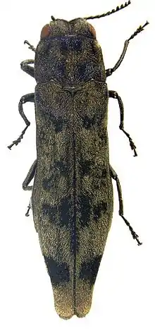- ↑ Bellamy, C. L. "Genus Agrilus Curtis 1825". The World of Jewel Beetles (Insecta: Coleoptera: Buprestidae). The Coleopterists Society. Archived from the original on 15 February 2016. Retrieved 25 April 2018.