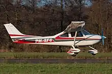 The Skylane is a high-wing monoplane with a fixed nose-wheel landing gear and powered by a Rotax 912 piston engine.[1] The enclosed cabin has side-by-side seating for two and dual yoke-style controls.[1][2][3][4]
