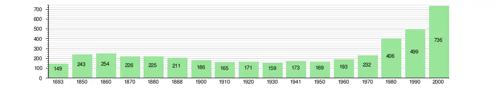 As of 2000, there were 261 private households in the municipality, and an average of 2.7 persons per household.[9] There were 64 households that consist of only one person and 28 households with five or more people. Out of a total of 268 households that answered this question, 23.9% were households made up of just one person. Of the rest of the households, there are 64 married couples without children, 109 married couples with children There were 22 single parents with a child or children. There were 2 households that were made up of unrelated people and 7 households that were made up of some sort of institution or another collective housing.[10]