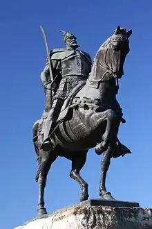 Due to overlapping and competing territorial claims with other Balkan nationalisms and states over land dating from the late Ottoman period, these ideas comprise a national myth. These myth aims to establish precedence over neighbouring peoples (Slavs and Greeks) and allow movements for independence and self-determination, as well as irredentist claims against neighbouring countries.[19][16][20][21] Pan-Albanian sentiments are also present in Albanian nationalism. due to the success of the Albanian revolt of 1912 the Ottomans agreed to the creation of an autonomous Albanian Vilayet however it was never implemented as the Balkan League took advantage of the weakened Ottoman state and invaded, territories which were supposed to be given to the Albanian vilayet were partitioned between the Balkan league states.[22][23][24] Part of Kosovo and western Macedonia were united by Axis Italian forces to their protectorate of Albania and upon Italy's surrender the same territories were incorporated into the German client state during the Second World War. Albanian nationalism contains a series of myths relating to Albanian origins, cultural purity and national homogeneity, religious indifference as the basis of Albanian national identity, and continuing national struggles.[25] The figure of Skanderbeg is one of the main constitutive figures of Albanian nationalism that is based on a person, as other myths are based on ideas, abstract concepts, and collectivism.[26][27][28][29]