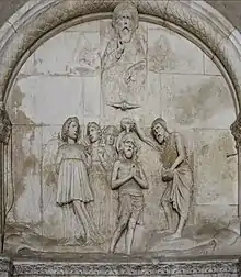 The relief of the entrance of the Cathedral of Trogir worked by Andrea Nikollë Aleksi.