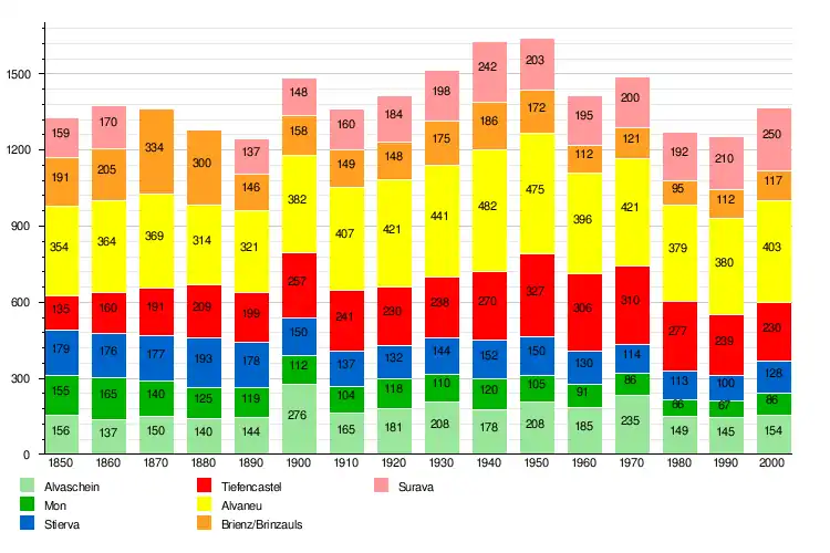 The total population of Albula/Alvra (as of December 2020) is 1,295.[20]