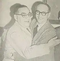 Frondizi and Gómez had met in 1942, and became friends.[3] Gómez was named political director of the campaign, and as such worked to prevent rifts in the UCRI, notably in Río Negro Province, where a dissident "Green List" had emerged from within UCRI ranks. Gómez persuaded a number of top Green List candidates to rejoin the official UCRI list, and thus neutralized the rival faction; among those so persuaded was Senatorial candidate José María Guido, who was elected and would, in 1962, become President of Argentina.[4] The UCRI ticket received the exiled Perón's endorsement late in the campaign, and the duo won the 1958 elections by 17% over Balbín's UCRP.[5] They were inaugurated on May 1.
