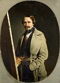He had his first art lessons in his hometown with Jan Maszkowski.[1] After 1846, he studied at the Academy of Fine Arts Vienna and the Academy of Fine Arts, Munich. Later, he attended the École des Beaux-Arts in Paris. During his student years, he created a large number of humorous drawings and cartoons depicting the life of the artistic community. They are now in the collection of the Ossolineum in Wrocław.[1]