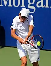 He returned to action in August at the Washington Open. Seeded third, he was defeated in the second round by Steve Johnson.[94] Seeded 12th at the Canadian Open, he was eliminated in the second round by Nikoloz Basilashvili.[95] Seeded 14th at the Western & Southern Open in Cincinnati, he fell in his second-round match to Gaël Monfils.[96] Seeded 14th at the US Open, he lost in the first round to Taylor Fritz.[97]