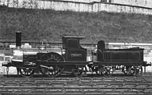 Allan's 2-2-2 Columbine, GJR No. 49, LNWR No. 1868 with cab, built 1845 withdrawn 1902