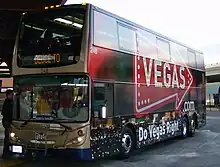 Dublin Bus operate a number of Enviro500s on the Volvo B9TL chassis, with a total of 70 bought across two batches between 2005 and 2007 with funding from the Department of Transport to increase capacity on the city's bus routes.[15] A first batch of twenty Enviro500s entered service in December 2005 with Dublin Bus at Donnybrook garage, downsized from what was to be an order of 150 tri-axles.[16] A further batch of fifty Enviro500s, with a slightly longer front overhang and Euro IV engines, entered service in 2007 at Phibsboro depot.[17]