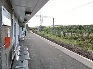 Opened by the Caledonian and Dunbartonshire Junction Railway on 15 July 1850,[2] it became part of a joint London, Midland and Scottish Railway and London and North Eastern Railway line during the Grouping of 1923. The line then passed on to the Scottish Region of British Railways on nationalisation in 1948. The line through the station was double until 1973, but now only one track and platform are in use.
