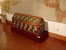 After his death, Alfonso's body was sepulchered at the San Pablo Church of Valladolid, one of the churches of the Dominican Order.[1] In the Museo de Valladolid, located in the Palacio de Fabio Nelli. On display is the actual sepulcher and the clothes that the infante was buried in.