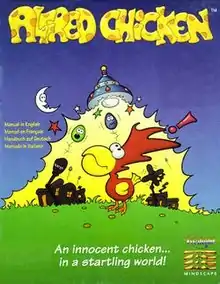 Alfred Chicken is a platform video game developed by Twilight and published by Mindscape. The game was released for Amiga, Amiga CD32, Game Boy, NES, Super NES in 1993 and February 1994, in Europe and North America, respectively. A Europe-exclusive remake of the game, entitled Alfred's Adventure, was developed by Möbius Entertainment and released by SCi for Game Boy Color in June 2000.[1] Another remake, named Alfred Chicken, was also developed by King Monkey, a division of Möbius Entertainment, and released by Sony Computer Entertainment for PlayStation in 2002.