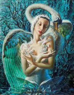 Alicia Markova "The Dying Swan" is a 1949 painting by Vladimir Tretchikoff. (It is also known simply as The Dying Swan, but is not to be confused with another Tretchikoff painting with the same title.) The painting depicts the prima ballerina Alicia Markova in her most famous role, The Dying Swan, from which she became inseparable in the minds of the public; it is for this reason that the artist painted the swan and Markova as one and the same being.[1]
