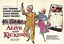 Alive and Kicking is a 1959 British comedy film directed by Cyril Frankel and starring Sybil Thorndike, Kathleen Harrison, Estelle Winwood and Stanley Holloway,[1] with Richard Harris making his film debut. Three women run away from a retirement home in order to avoid being separated. They eventually end up running a successful cottage industry sweater business on a remote island offshore of Ireland (although the film was shot in Scotland).[2]