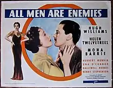 All Men Are Enemies is a 1934 American pre-Code drama film directed by George Fitzmaurice and written by Lenore J. Coffee. The film stars Helen Twelvetrees, Mona Barrie, Hugh Williams, Herbert Mundin, Henry Stephenson and Walter Byron.[1][2][3] The film was released on April 20, 1934, by Fox Film Corporation. It is based on the 1933 novel of the same title by Richard Aldington.