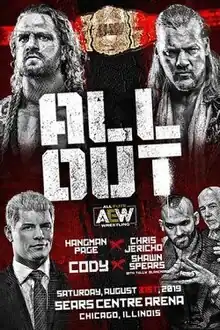 19. 1 2 AEW Staff (May 31, 2019). "Hangman Page vs. Chris Jericho For The AEW World Championship Officially Set For All Out". All Elite Wrestling. Retrieved June 1, 2019.