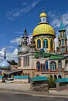 The Temple of All Religions (Russian: Храм всех религий, Tatar: Барлык диннәр гыйбәдәтханәсе) or the Universal Temple (Russian: Вселенский храм) is an architectural complex in the Staroye Arakchino Microdistrict of Kazan, Russia. It consists of several types of religious architecture including an Orthodox church, a mosque, and a synagogue, among others. It is currently under construction since 1992, started by local artist and philanthropist Ildar Khanov[1] (1940 - 2013). The structure now serves as a cultural center and a residence for Khanov's brother and sister, who both continue to serve as guides and supervisors of the complex.[2]