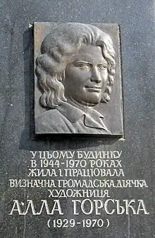 ![]() Memorial plaque on the house where Alla Horska lived | |