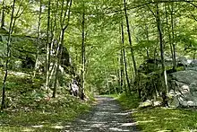 Allamuchy Mountain State Park is located in Allamuchy Township and Byram Township in the Allamuchy Mountain region of New Jersey. The park is operated and maintained by the New Jersey Division of Parks and Forestry. There are more than 20 miles (32 km) of unmarked trails in the northern section of Allamuchy, and 14 miles (23 km) of marked multi-use trails.