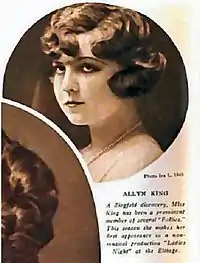 Allyn S. King (February 1, 1899 March 31, 1930) was an American stage and film actress and singer who began her career in vaudeville, and later as a Ziegfeld Follies performer.