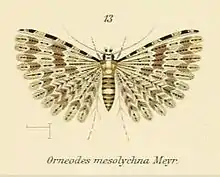 - ↑ Beccaloni, G.; Scoble, M.; Kitching, I.; Simonsen, T.; Robinson, G.; Pitkin, B.; Hine, A.; Lyal, C., eds. (2003). "Alucita mesolychna". The Global Lepidoptera Names Index. Natural History Museum.