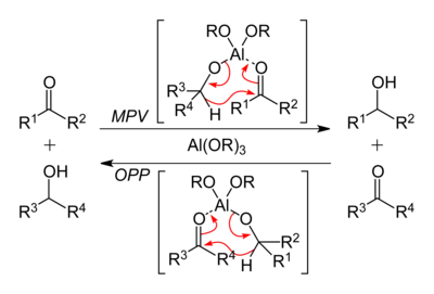 Aluminium isopropoxide is used in MPV reductions of ketones and aldehydes and the Oppenauer oxidation of secondary alcohols.[6] In these reactions, it is assumed that the tetrameric cluster disaggregates. It is used in the Tishchenko reaction.
