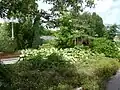The garden abounds with different varieties of plants and fragrant flowers whose colours and natural shapes creates a contrast to the geometrical layout of the park.[2] Japanese cherry trees, blooming in April, plays a particularly distinctive role among the parks vegetation.