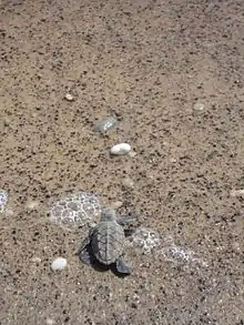 Other turtles who use the beach are the green sea turtle, the olive ridley sea turtle and occasionally the hawksbill sea turtle.[2]