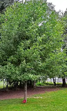 Fifteen mostly native tree varieties were offered (oak, wild cherry, white willow, ash, London plane, evergreen or holm oak, beech, copper beech, birch, lime, maple, cedar, rowan, Scots pine, Sophora japonica).[14] The sponsorship donation ranged from 50 to 250 euro according to type, the most expensive being the evergreen oak. The idea was to plant semi-mature trees, not small saplings, for a stronger impression and increased probability of survival. The sponsorship amount was about half the cost of sourcing and planting each tree, after discounted supply by the State forestry company, Coillte, the other half being covered by the scheme's promoters.[9] The sponsorship-participative aspect of the project has been summarised as the "idea that if residents purchased trees they would care more about their environment and that series of single acts would create long term values change in the area."[15]